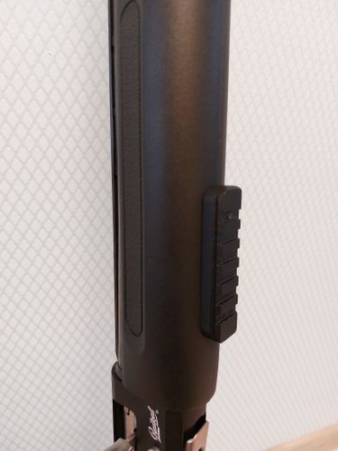 Устанавливается на 3 стальных винта, предварительно разметив и просверлив цевье (винты закручиваются с внутренней стороны цевья). Мы настоятельно рекомендуем устанавливать планку на высокопрочный анаэробный фиксатор резьбы (синий), предварительно хорошо обезжирив поверхность планки и цевья.